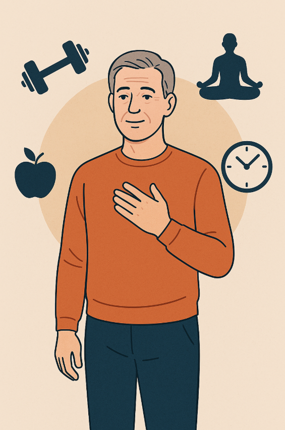 중년은 피할 수 없는 시기이지만, 준비와 관리를 통해 그 질을 높일 수 있습니다. 첫째, 정기 건강검진은 필수입니다. 혈압, 혈당, 콜레스테롤, 간·신장 기능, 갑상선, 호르몬 검사 등을 통해 조기 이상 징후를 발견하면 대응 속도가 빨라집니다. 둘째, 맞춤형 운동 프로그램을 설계하는 것이 필요합니다. 관절에 부담을 줄이는 저충격 운동, 심폐 기능을 유지하는 유산소 운동, 근육량을 보존하는 근력 운동을 균형 있게 포함해야 합니다. 셋째, 수면 환경을 개선하는 것이 중요합니다. 침실 온도를 18~20도로 유지하고, 취침 1시간 전부터 전자기기 사용을 줄이면 숙면 확률이 크게 올라갑니다. 마지막으로, 관계의 질을 관리해야 합니다. 중년의 외로움은 심혈관질환 위험을 높이는 요인 중 하나입니다. 가족, 친구, 취미 모임 등 사회적 유대감을 유지하는 것은 신체 건강 못지않게 중요합니다.
